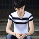 夏季短袖T恤男 修身条纹纯棉体恤2017青年男士V领薄款打底衫上衣