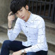 春秋装青少年长袖衬衫男 新款韩版修身印花白衬衣 男装薄款上衣潮