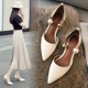 韩版春秋季尖头高跟鞋女真皮高跟单鞋女细跟浅色女鞋浅口小白皮鞋