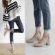 春秋磨砂皮短靴女 中跟裸靴马丁靴女鞋粗跟女靴子 黑色高跟鞋单靴