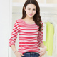 夏季莫代尔棉条纹七分袖t恤女 宽松显瘦打底衫韩版一字领体恤中袖