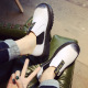 2017韩版春秋新款圆头粗跟单鞋侧拉链低跟内增高低帮鞋女鞋批发