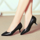 工作鞋女黑色OL职业中低跟单鞋尖头鞋子大码女鞋41-43皮鞋春牛皮