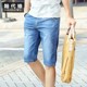 翰代维夏季薄款牛仔短裤男装修身韩版直筒五分中裤弹性蓝色5分裤