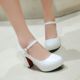 春秋新款韩版粗跟高跟鞋公主女学生鞋圆头一字扣带白色婚纱伴娘鞋