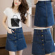 春装大码牛仔短裙女胖mm韩版高腰包臀半身裙大号学生百搭A字裙夏