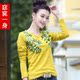 窈窕一身2017新款春装修身大码印花长袖t恤女款打底衫女式上衣秋