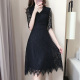 LUMN2017夏装新款黑色蕾丝连衣裙韩版短袖高腰修身显瘦大摆连衣裙