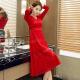 蕾丝连衣裙长袖中长款钩花绣花镂空大红色回门服新娘春夏2017新款