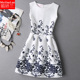 2017春夏无袖背心裙韩版中长少女学生印花显瘦蓬蓬裙连衣裙A字裙