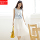 17春夏装少女中长款连衣裙印花修身显瘦A字裙无袖打底背心蓬蓬裙