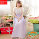 夏装短袖雪纺连衣裙韩版少女中长款仙女中学生沙滩裙大摆白色长裙
