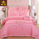 星晨韩式结婚婚庆床上用品粉色大红四件套 全棉刺绣婚庆套件