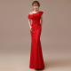 2017春夏季新款新娘订婚敬酒服斜单肩红色鱼尾修身长款宴会晚礼服
