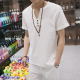 T恤男短袖 韩版休闲套装 亚麻棉麻v领宽松夏季日系潮男士潮流男装
