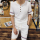 男士短袖t恤套装韩版潮流修身立领青年体恤夏季薄款七分裤两件套