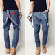 秋装新品牛仔背带裤中腰男士牛仔裤哈伦裤吊带裤韩版潮男装长裤子