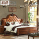 欧式真皮床1.8米 双人床实木雕花 头层牛皮皮艺床 卧室 美式家具