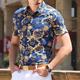 2017中年丝光棉碎花短袖衬衫男士夏季时尚薄印花加肥加大码衬衣男