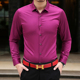 春季男士纯色衬衫商务休闲中年长袖修身大码男装金丝绒薄款棉衬衣