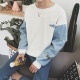 2017春季男装港风袖子拼接破洞牛仔撞色套头打底衫男圆领卫衣男士