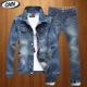 新春季潮流韩版牛仔衣外套男士牛仔套装男两件套显瘦个性帅气复古