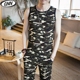 夏季迷彩无痕跨栏背心男潮个性修身型韩版潮流运动套装男休闲透气