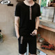 夏季休闲运动套装男青年大码短袖T恤短裤套装韩版修身潮流跑步服