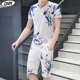 GNN男夏季短袖t恤套装韩版修身学生潮流 青年V领个性休闲印花体恤