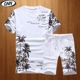 GNN短袖T恤七分裤运动套装男夏季大码学生休闲韩版修身潮流跑步服