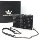 2017新款复古铆钉徽章吊坠小方包 仿小羊皮双层单肩斜跨链条小包