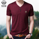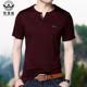 男T恤夏装中年男士短袖V领商务半截袖无领冰丝针织衫简约丅血宽松