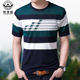 夏装潮款中年男士短袖t恤条纹带领冰丝光棉丅血体恤桖半袖爸爸装