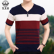 中年男士短袖t恤 翻领有条纹爸爸夏装冰丝针织衫丅男人父亲节衣服