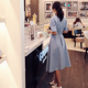 蓝白条纹衬衫裙中长款2017寸衣裙子韩版v领短袖夏季夏天连衣裙女