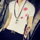 夏季韩版男士V领紧身有领T恤 发型师青少年V字领带领短袖T血桖 潮