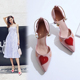 凉鞋女夏2017新款真皮尖头细跟鞋桃心一字扣带高跟鞋珍珠包头女鞋