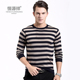 恒源祥中年男士长袖t恤男条纹春秋薄款圆领针织羊毛t恤大码爸爸装