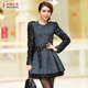 毛呢外套女中长款 2016秋冬新款韩版修身PU皮拼接双排扣呢子大衣