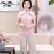 弋婕夏装新款中老年妈妈装圆领印花T恤+七分裤大码休闲两件套