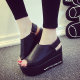 2017春夏新款时尚高跟坡跟凉鞋子白色松糕鞋厚底防水台露趾鱼嘴鞋