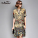 宣贝2016夏季新款真丝麻连衣裙女短袖直筒宽松大码印花亚麻连衣裙