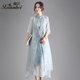 宣贝复古中国民族风套装气质女装时尚连衣裙刺绣中裙欧根纱两件套