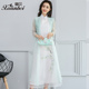 宣贝2017春夏新款印花民族风套装旗袍连衣裙女中长款阔腿裤两件套