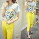 2017新款夏装加肥加大码女装印花T恤上衣打底衫哈伦裤胖mm套装潮