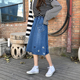 春夏新款文艺复古名族风半身裙牛仔裙女百搭宽松休闲中长裙松紧腰