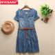 韩版2015夏装新款水洗修身时尚短袖牛仔连衣裙子 胖妹妹大码女装
