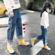 儿童装2017新款韩版春秋阔腿裤女童休闲长裤中大童直筒牛仔裤子潮