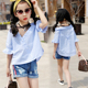 2017新款女童韩版时尚个性短袖衬衫儿童装夏装上衣大童女装夏季潮