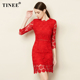 蕾丝拼接红色连衣裙 春装小红裙夏新娘结婚敬酒服鱼尾裙红裙子秋